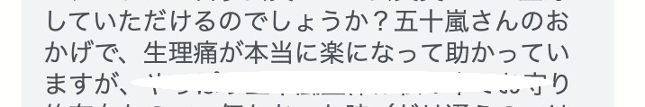 五十嵐さんのおかげで生理痛が本当に楽になって助かっています。